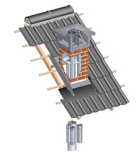 De combiflue schoorsteen is een schoorsteen met vier uitgangen: